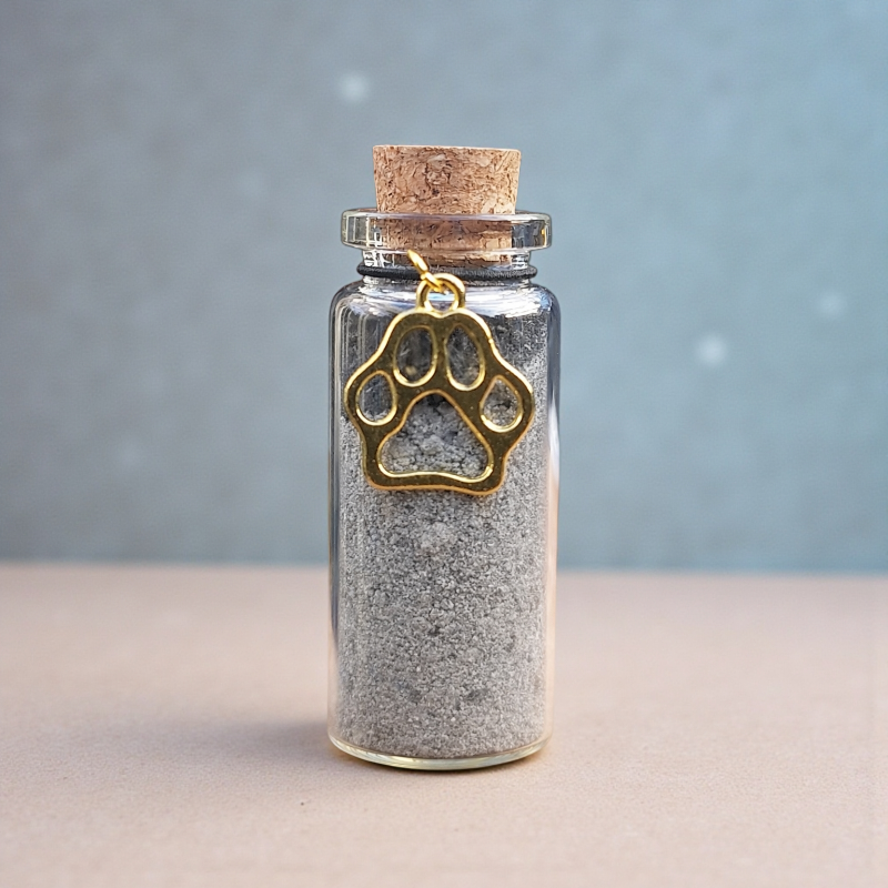Inclusief gratis memorial flesje voor het bewaren van een beetje as of een ander klein aandenken.
