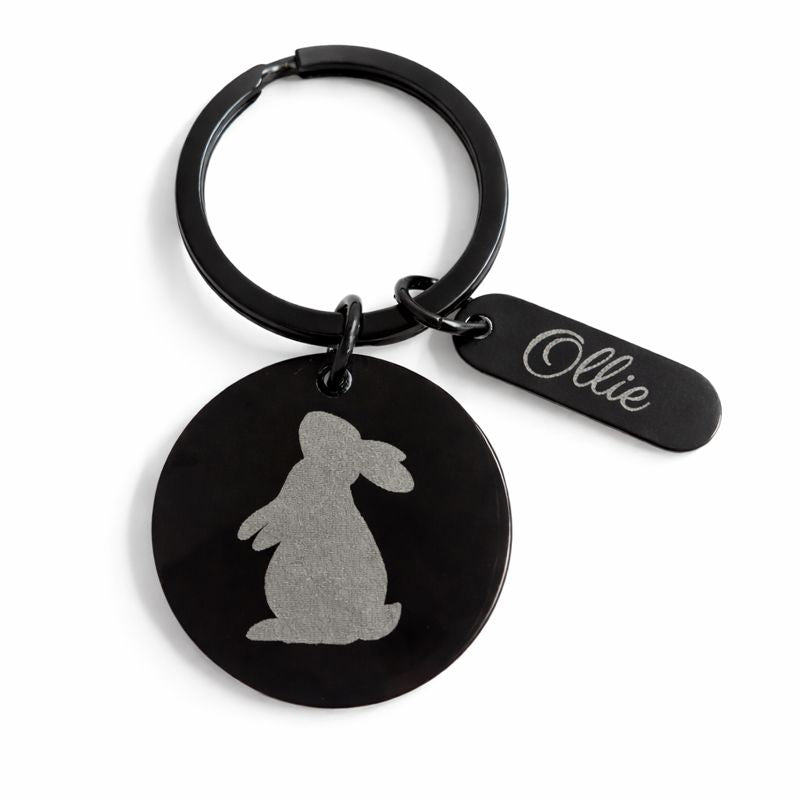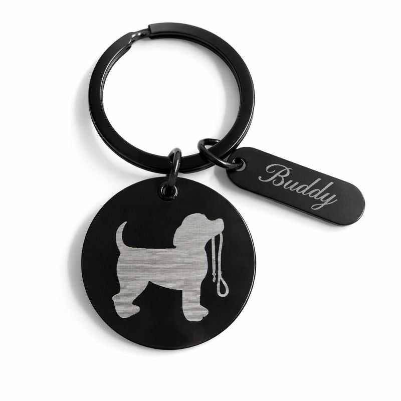Deze stijlvolle sleutelhanger is gegraveerd met een silhouet van een huisdier en een naam naar keuze.  Of je deze sleutelhanger nu draagt aan je sleutelbos, tas of bewaart op een speciale plek: het is een liefdevolle herinnering aan een trouwe vriend die altijd een plek in je hart houdt. Ook heel geschikt als troostend cadeau voor iemand die afscheid heeft moeten nemen van zijn of haar huisdier.