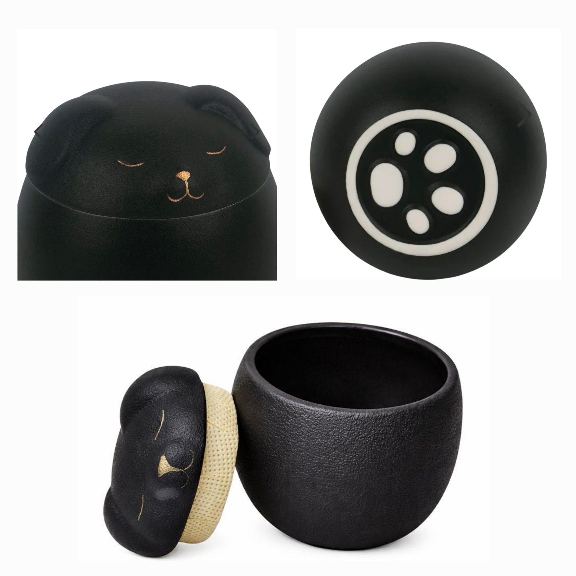 Deze zwarte mini urn is ontworpen als een zacht en troostrijk aandenken aan een trouwe vriend. De urn heeft de vorm van een slapend hondje, met gesloten oogjes en subtiele gouden details, wat rust en geborgenheid uitstraalt. Een symbool van vrede, liefde en een blijvende band. De urn is gemaakt van keramiek met een matte, zachte afwerking. Dankzij het compacte formaat is deze mini urn uitermate geschikt om een kleine hoeveelheid as te bewaren.